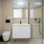 Lägenheten är utrustad med te/kaffebryggare, sitthörna och TV samt har ett komplett kök med mikrovågsugn, vattenkokare och köksredskap. Gästerna kan använda separat toalett och dusch.